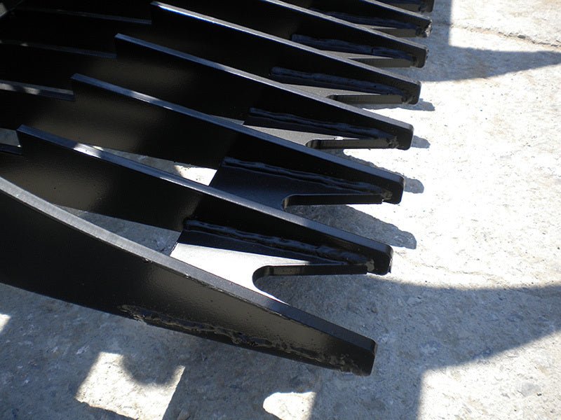 The Blue Diamond® Standard Duty Grapple Rock Bucket uses 3/8" steel with the tines spaced at 3".