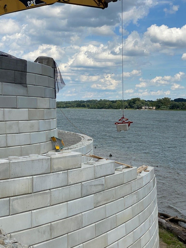 Kenco manufactures the ML3K5T32V3 Multilift to lift and move slabs such as concrete block, sidewalk pads or other precast items. The ML3K5T32V1 Multilift will work with any machine with lifting capabilities using a sling and shackle assembly such as our Rigmax. This mechanical lifting grab has a 3,000-pound capacity with specially engineered pads that pivot in all directions to accommodate a sloped surface. The Kenco Multilift attachment can grip from 5 to 32 inches when using it to grip on the outside of a block. It can also grip from 18 to 41 inches when the legs are reversed to push from the inside out.