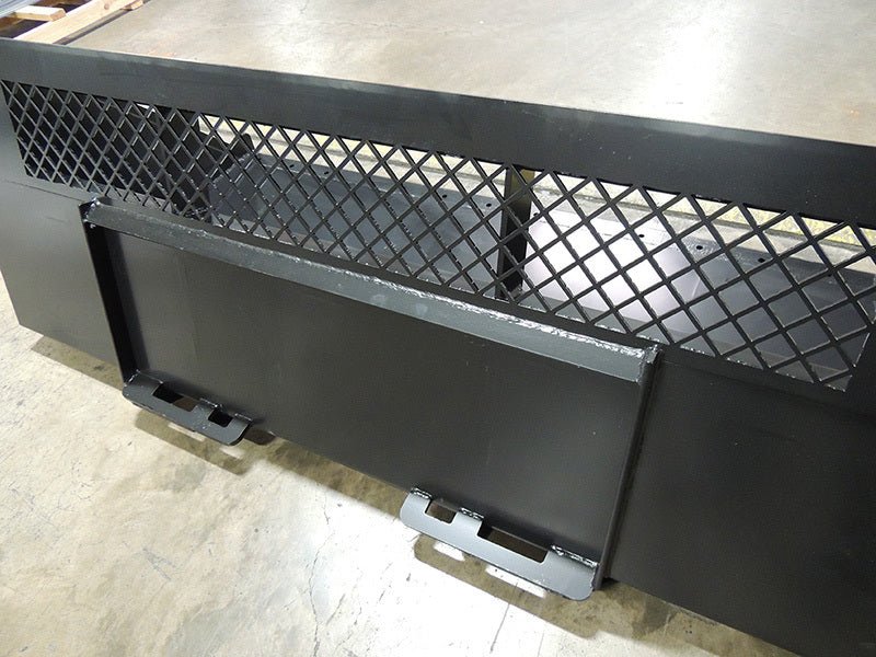 The Blue Diamond High Back Snow and Mulch Bucket features a higher back than our standard snow and mulch bucket, with a mesh window to maintain visibility while preventing material from rolling over onto your machine. The thicker metal and reinforced floor and back give this bucket more durability for snow work when operating your skid steer at higher speeds. With a 32-inch high back and 38-inch bottom, this versatile bucket is perfect for snow removal, mulch handling, and is often used as a chicken litter bucket (or turkey litter) and for other wood shavings applications. Available in six widths from 60 inches to 102 inches, each bucket is pre-drilled for bolt-on edge and features internal ribs to strengthen the floor and back.